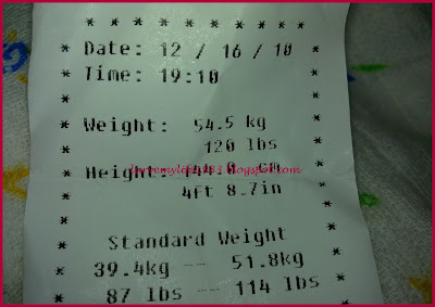 Klau ikut BMI...berat paling maksimum yg sesuai dgn ketinggian pun dlm 52.9 kg...means paling skit pun kene turun dlm 3 kg lg...adeh...............tp klau bole nk dpt berat dlm 50 kg gitu........dpt 47 kg pun lg best...hehe...